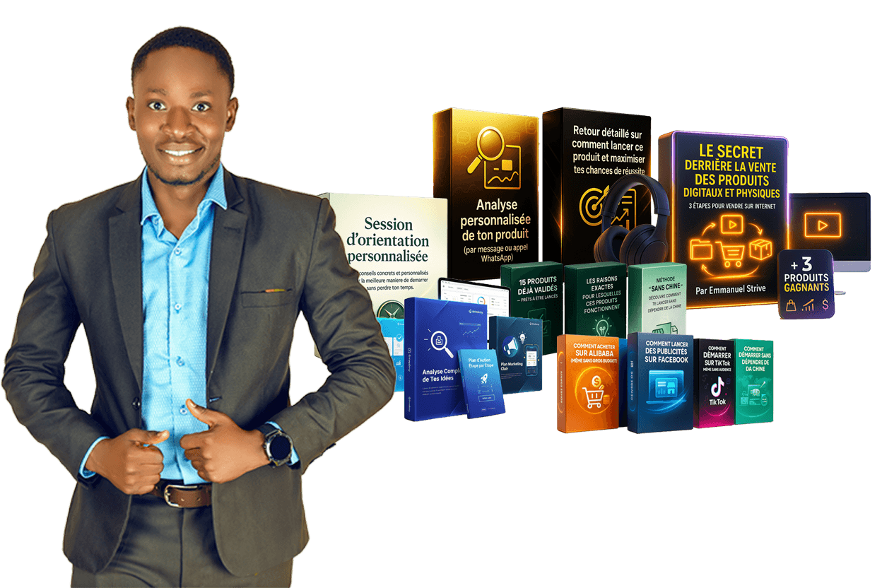 Découvre aujourd’hui comment clarifier ton idée, choisir 3 produits rentables et bâtir un plan d’action concret pour enfin te lancer avec confiance et générer tes 10 premières ventes cette semaine et ton premier Million en moins de 30 Jours.